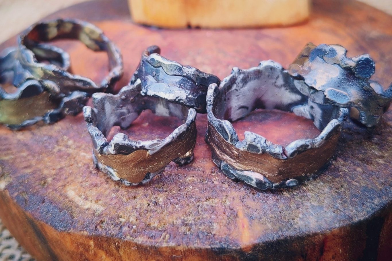 Ihre Struktur ist Einzigartig. Keiner gleicht den Anderen. Sie sind in Größe, Form und Farbe variabel und eignen sich perfekt als Verlobungs- oder Hochzeitsringe.